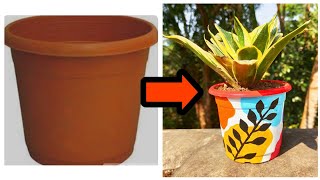 Easy pot paintin! Plastic pot painting! Pot painting with Acrylic colours #rupamsingh #diy #potpaint