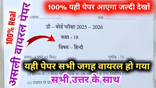 class 10th Hindi pre board paper 2026 full solution,| कक्षा 10वीं हिंदी प्री बोर्ड परीक्षा पेपर 2026
