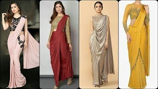 Latest pre-draped saree design images, new trendy pre-draped saree with blouse design ideas 2023-24,