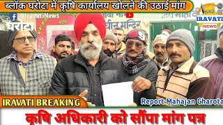 किसानों ने उठाई घरोटा में ब्लॉक ऋषि कार्यालय खोलने की मांग, उच्च अधिकारियों को सौंपा ज्ञापन#cmpunjab