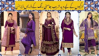 purple color outfits idea |purple kurti dress design Latest party wear purple dress design idea 2021