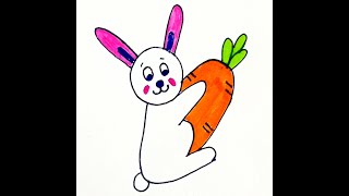 Rabbit Drawing | खरगोश का चित्र | How to Draw a Rabbit with Carrots | Draw Khargosh | Animal Drawing