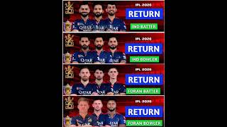 IPL 2026 | Royal Challengers Bangaluru New Final Squad | RCB Team 2026 Players List | RCB 2026 Squad