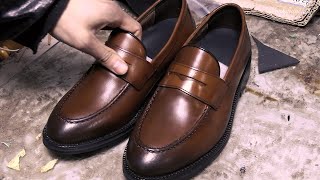 HANDMADE Penny Loafers Making Process. Korean shoemaker with 50 years of experience