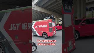 Unmanned delivery vehicles move slowly when crossing intersections.#UnmannedDelivery #SmartLogistics