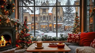 Cozy Winter Coffee Shop Ambience βπ§£ Smooth Christmas Jazz Music & Crackling Fireplace for Relax