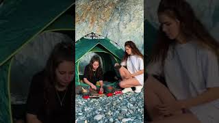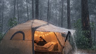 Beautiful Girls Solo Camping in the Rain 🌧 | Relaxing in the Tent with My Dog 🐶|ASMR, Cooking Forest