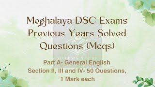 Meghalaya DSC|LDA|Previous Years Solved Question Paper|MCQs|Part A|Section II,III,IV|General English