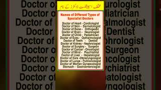 Doctors || Type of Doctors || Specialist Doctors List || Disease And Its Doctor || GNM || ANM || BSC