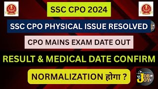 SSC CPO 2024 Mains Result Date | SSC CPO 2024 MEDICAL DATE |SSC CPO 2024 Final Cut off Normalisation