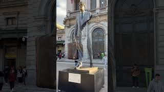 Gold Lady against wind in London #performer #shortsviral #statue #livingstatue #goldlady #goldenlady