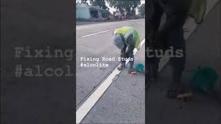 Fixing Of Road Stud / Raised Pavement Marker for Night Time Visibility #alcolite #alcoliteroadsafety