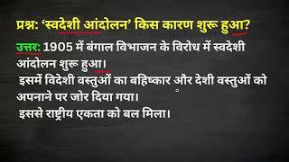 स्वदेशी आंदोलन का इतिहास | बंगाल का विभाजन और स्वदेशी आंदोलन swadeshi aandolan आधुनिक भारत का इतिहास