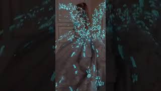 Stardust Glow In The Dark Cracked Ice Quince Gown in Lavender/Champagne w/Detachable Scalloped Train