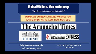 The Arunachal Times & others Analysis - 27th September 2022 - EduMiles Academy - APPSC Coaching