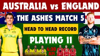 Australia vs England The Ashes 5th Match Playing 11 & Head to Head record, ENG Playing 11 vs AUS l