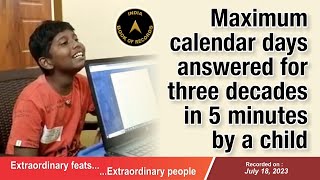 Maximum calendar days answered for three decades in 5 minutes by a child