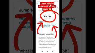 Tiktok Foryou Option Not Showing | Tiktok Foryou Option Enable | Tiktok Video Foryou Option On | Fix