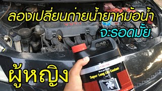 Will a woman survive changing her car's coolant for the first time?