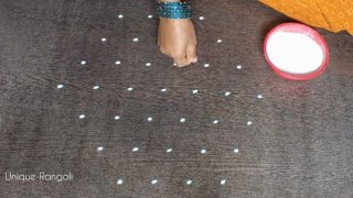 Small sikku kolam with 5 dots|Easy Melikala muggu|Kolam for beginners|Chinna muggu by Unique Rangoli