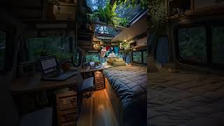 Ultimate Van Transformation Bed Desk and Nature View #VanLifeDesign #SmallSpaceLiving #VanConversion