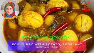 আলু বেগুন দিয়ে ডিমের ঝোল | Bangladeshi Egg curry with potato, eggplant | Dimer Jhol |