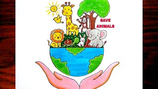 Save wildlife drawing/ National Wildlife day drawing #shorts #youtubeshorts #artvideo #ytshorts #art
