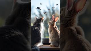 “Window Watchers: Cat & Bunny’s Calm Moment 🐱🐰✨”#WindowWatchers #CatAndRabbit # #CuteAnimals #Shorts