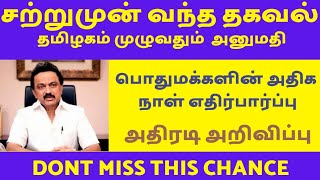 சற்றுமுன் வெளியான முக்கிய தகவல்கள் !! மக்கள் மகிழ்ச்சி !!! தமிழக அரசு அதிரடி அறிவிப்பு !! TN Special