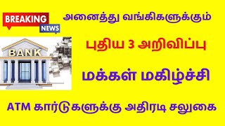 சற்றுமுன்: வங்கிகளுக்கு 3 புதிய அறிவிப்பு !! மக்கள் மகிழ்ச்சி !! ATM கார்டுகளுக்கு புதிய சலுகை !!