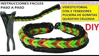 COMO HACER PULSERA DE GOMITAS QUADFISH CRUZADA (CROSS QUAD-FISH) CON 2 T...