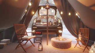 Winter Car Camping Ambience | Fireplace Sounds | Beautiful Falling Snow