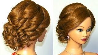 Bridal updo. Romantic hairstyle for medium hair.