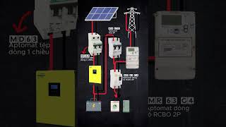 Cách đấu nối Pin mặt trời không lưu trữ với Aptomat 1 chiều, Aptomat xoay chiều và Bộ chuyển đổi