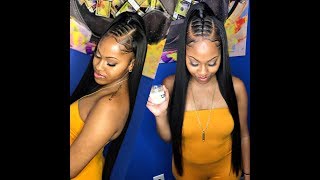 $5 SLEEK EXTRA LONG BRAIDED PONYTAIL on Natural Hair - GOT2B Freeze Spray Only