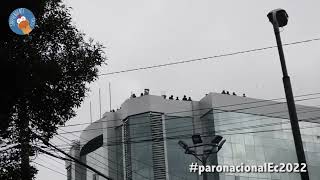 Policías lanzan piedras y granadas de gas a manifestantes desde terraza de contraloría en Quito