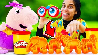 Regardez ! Les animaux dans les jumelles !🐯🦁 Jeux avec play doh et Peppa Pig jouet pour bébés