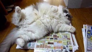 絶対わざとな猫 Cat purposely sits on the paper everyday .