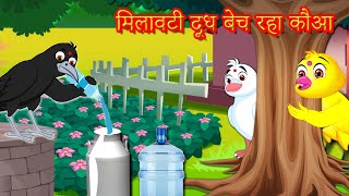 मिलावटी दूध बेच रहा कौआ | Chidiya Cartoon | Hindi Moral |Moral Story |Best Birds Stories Hindi