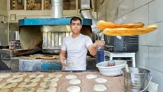 Baking the most popular Iranian bread with the high technique by a very young baker|bread baking