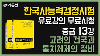 한국사능력검정시험, 유료강의 무료시청, 고려의 건국과 통치체제의 정비, 한국사 중급 13강
