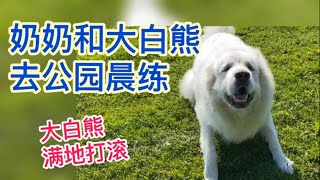 温哥华解封第三阶段:奶奶开始去公园晨练了,大白熊满地打滚,奶奶生气了。