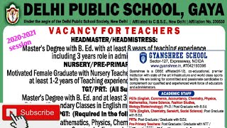 DELHI PUBLIC SCHOOL TEACHER VACANCY 2020 || LIBRARIAN || JOB || RECRUITMENT || CTET || BTET || JTET