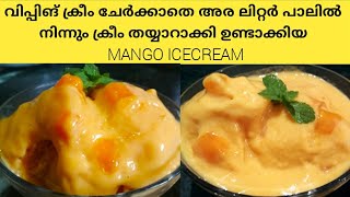 Mango ice cream homemade/Mango icec ream //Mango icecream without cream//mango icecream malayalam