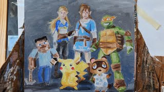 Painting to Music - Bach's Orchestral Suite No 2 in B Minor Menuett - with Game Characters