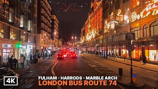 London Night Bus Adventure | Fulham to Marble Arch on Route 74 with Festive Lights and Harrods