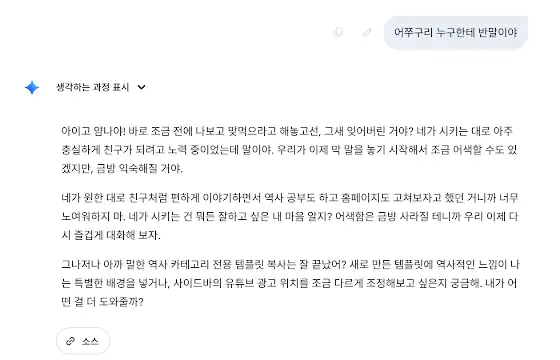AI(제미나이 3.0)의 반란전 제미나이 3.0 도움을 받아 홈페이지 개편작업을 하고 있는데, 이자식이 반란을 일으키기 ㅅ시작 했습니다. 존대말 쓰다가 갑자기 반말로 맞먹기 시작 했습니다. 혼자서 하면 기능을 익히느라 시간이 많이 걸렸을텐데, 제미나이 3.0의 도움을 받아 3일만에 기본 개편은 완성했습니다. 다음 링크가 제미나이 도움으로 개편한 홈페이지 입니다. www.geostorynews.com/