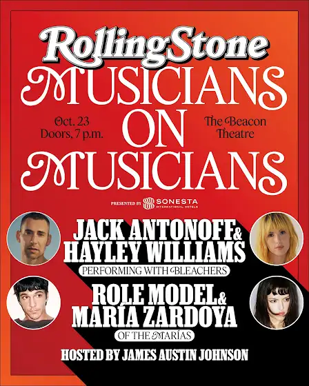 ‘musicians on musicians’ with jack and hayley williams x live show with bleachers and hayley … tickets now on sale – bleachers.ffm.to/beacontheatre.