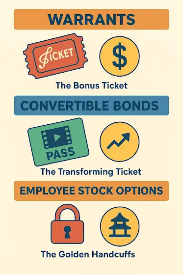 ๐ ๐๐ฅ๐ ๐ง๐ถ๐ฝ: All three instruments give people a reason to bet on the companyโs future success. Warrants and convertibles woo investors. Employee stock options keep talent motivated.