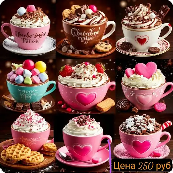 У вас есть возможность приобрести виртуальную чашку горячего шоколада с самыми разными добавками: нежные взбитые сливки и хрустящие вафли, воздушные зефирки, ароматное печенье – выбирайте свой любимый вкус!